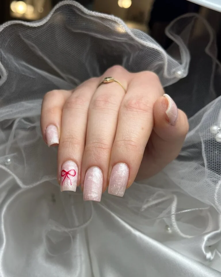 Jeśli kochasz subtelność, postaw na mleczny nude lub perłową biel z delikatnym, chłodnym połyskiem. „Czyste” odcienie pięknie odbijają światło lampek choinkowych i pasują do każdego outfitu – od jedwabnej koszuli po zimowy sweter.