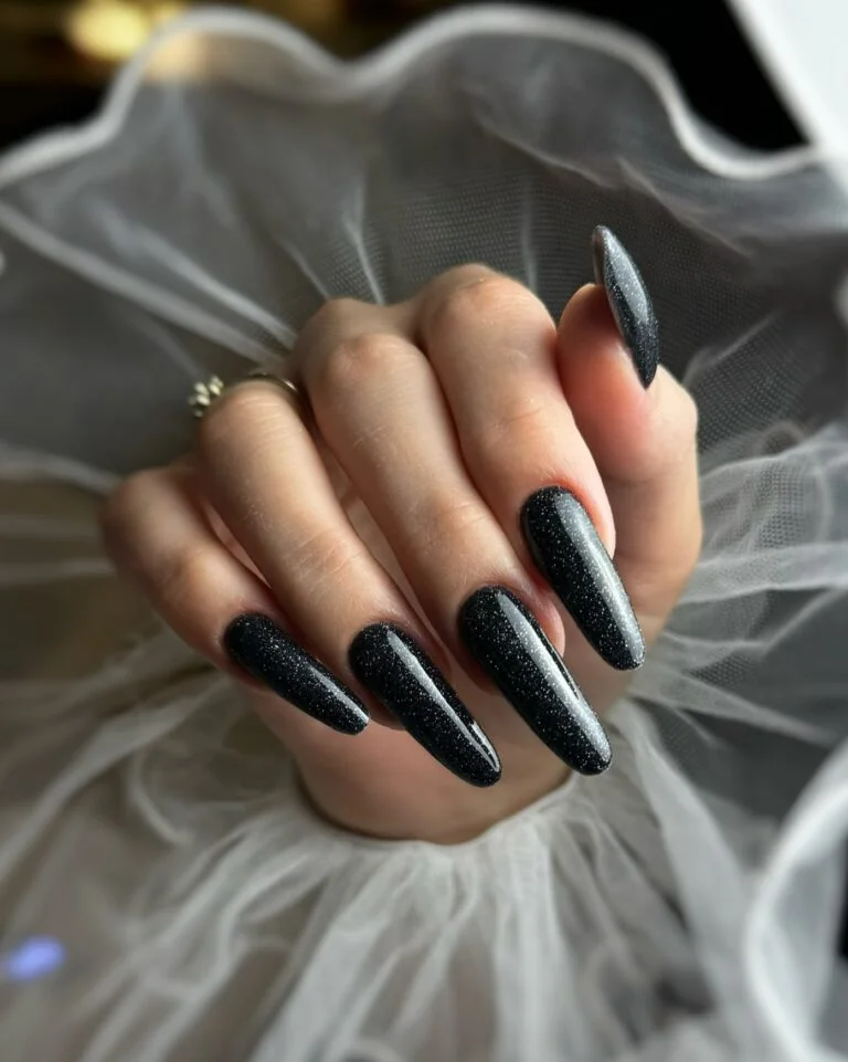 - Ballerina/koffin – dla odważnych, gdy marzą się pełne brokatowe paznokcie albo intensywne metaliki na paznokcie sylwestrowe.